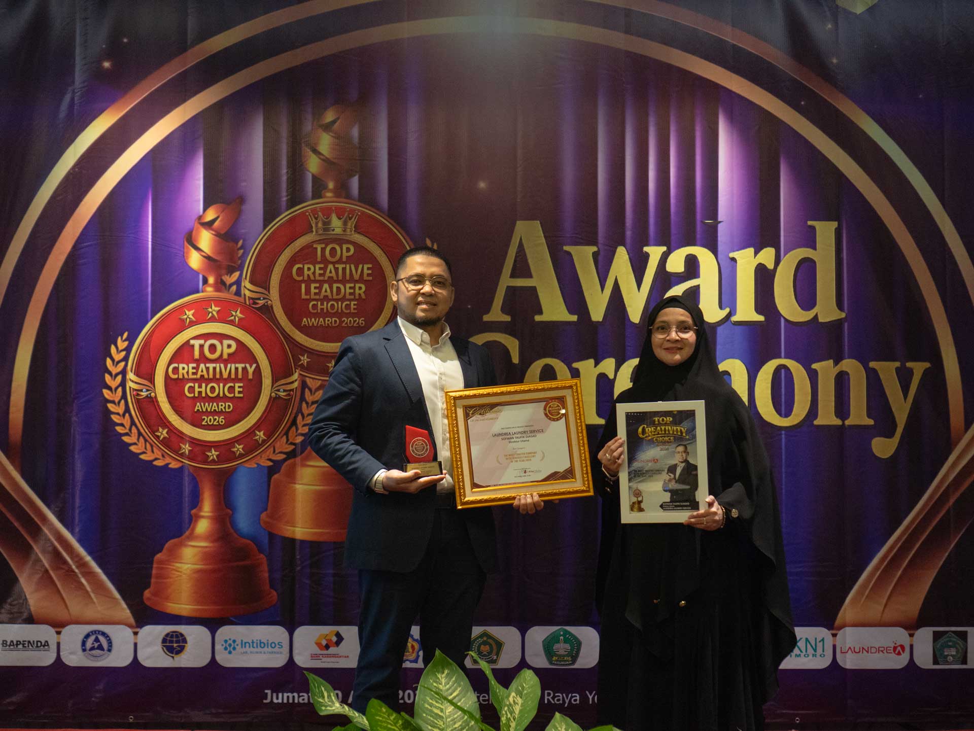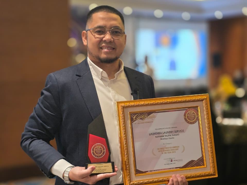 YOGYAKARTA – CEO & Founder Laundrea Laundry Service, Sofwan Taufik, berhasil meraih penghargaan bergengsi Indonesia Top Creativity Choice Award 2026 dalam kategori The Most Trusted Company With Service Excellent Of The Year 2026. Penghargaan tersebut diserahkan dalam acara yang digelar pada Jumat (10/4/2026) di Sahid Raya Hotel & Convention Yogyakarta.